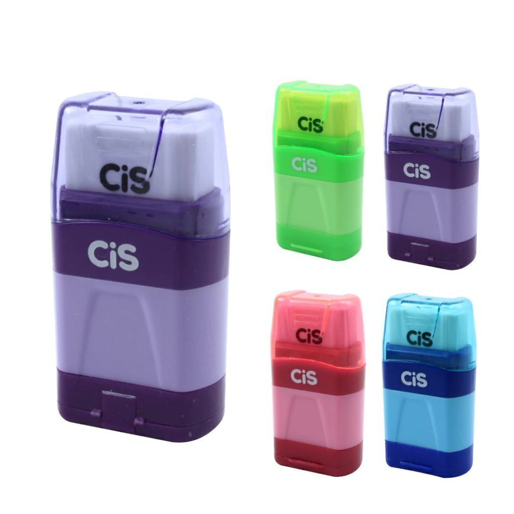 O Apontador 480 da Cis é a combinação perfeita de praticidade e funcionalidade para o dia a dia escolar. Ele conta com dois furos, permitindo apontar lápis de tamanhos diferentes, além de um reservatório grande que reduz a necessidade de esvaziar com frequência. Para completar, inclui uma borracha branca integrada, tornando este item indispensável para estudantes. Disponível em cores vibrantes como azul, rosa, roxo e verde, une russa e estilo em um único produto.