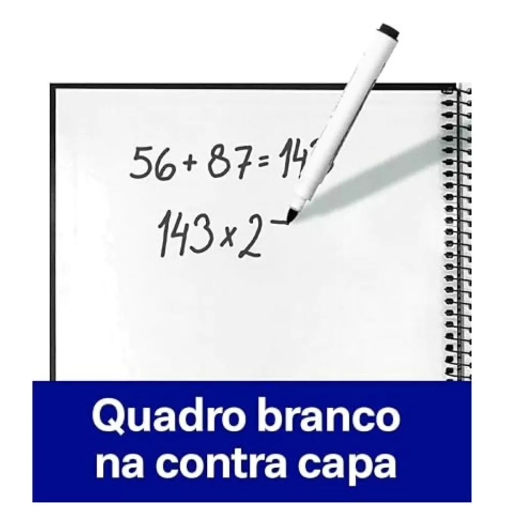 Destacamos a inovação Write&Erase, incorporando um quadro branco nas capas, permitindo cálculos, anotações e rascunhos sem desperdício de papel. Uma solução prática para maximizar a utilidade do seu caderno.