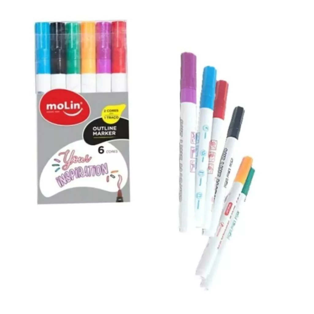 Caneta Marcadora Metálica Outline - Estojo com 6 unidades - Molin