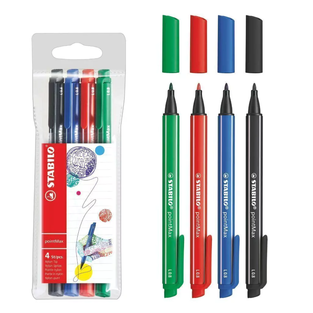 - Conteúdo: Estojo com 4 canetas Stabilo Pointmax