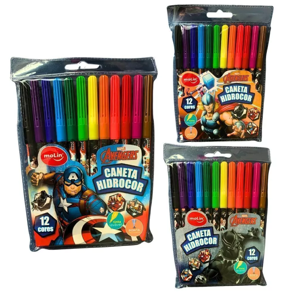 Prepare-se para uma aventura colorida com o Conjunto de Canetinhas Hidrográficas Avengers da Molin!