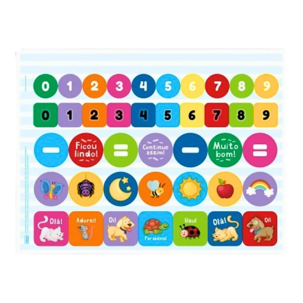 O produto conta com 20 folhas e cartela adesiva que pode ser utilizada para motivar e divertir as crianças.