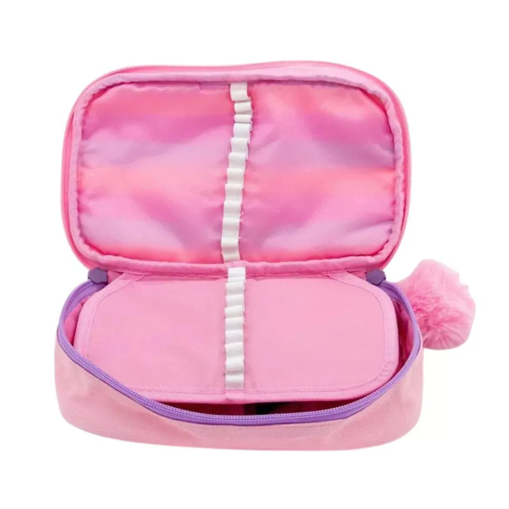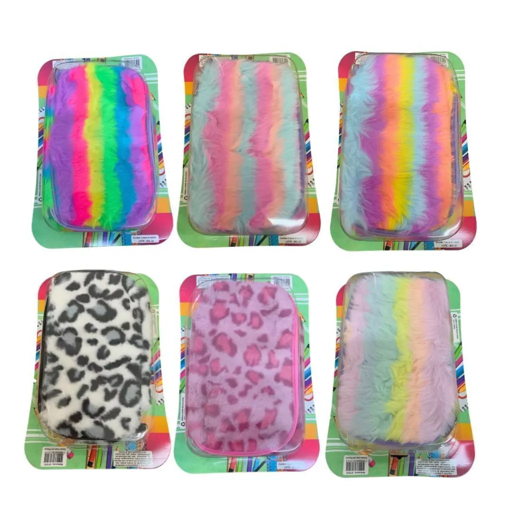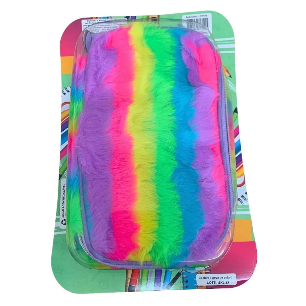 Eleve o seu estilo escolar com este estojo de pelúcia colorido, unindo funcionalidade e charme em uma peça única da Daterra.