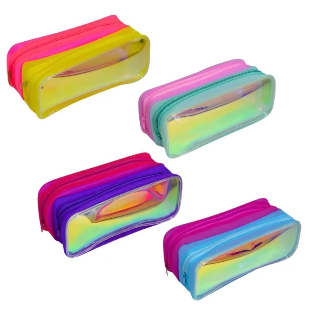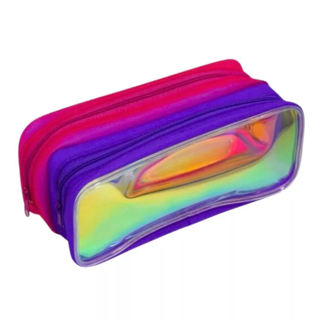 O Estojo Duplo Neon é uma escolha incrível para quem busca estilo, praticidade e espaço amplo. Seus dois compartimentos oferecem uma organização impecável, sendo ideal tanto para o ambiente escolar quanto para guardar maquiagem, pincéis e produtos de higiene pessoal.