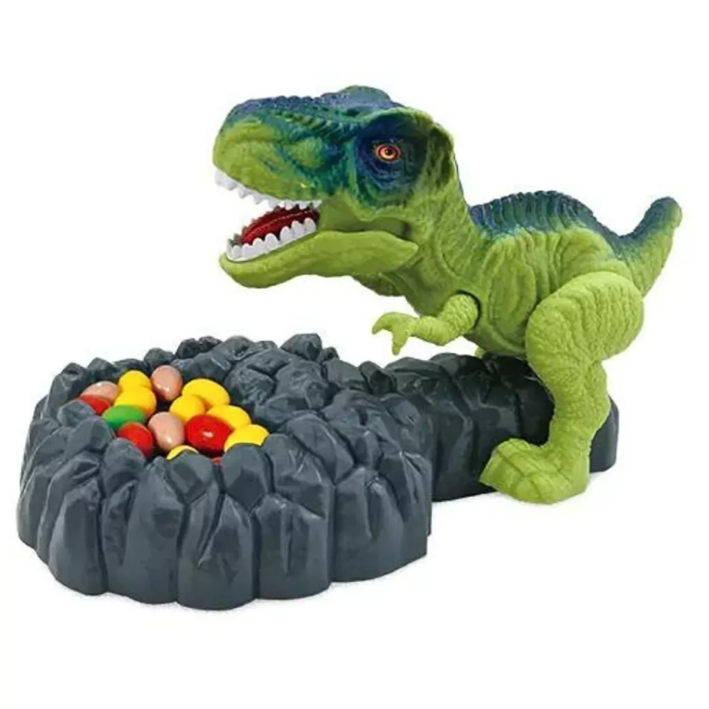 Com sons de rugido, o Dino sente e ruge quando algo toca o fundo do ninho.