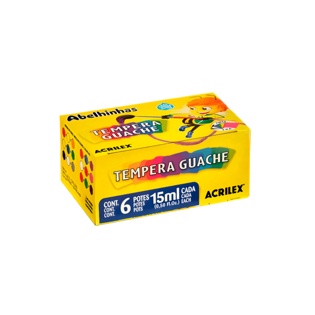 - 1 Tinta Guache Acrilex com 6 cores: cores vibrantes, solúveis em água e com ótimo rendimento.