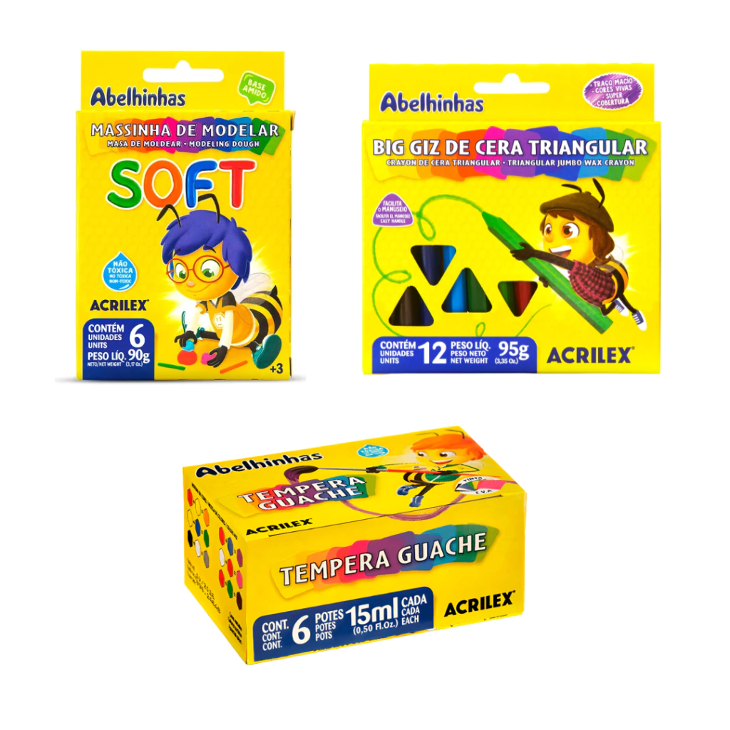 Ideal para crianças explorarem cores, texturas e formas, esse super combo reúne os materiais preferidos da Acrilex para garantir muita criatividade, aprendizado e diversão.
