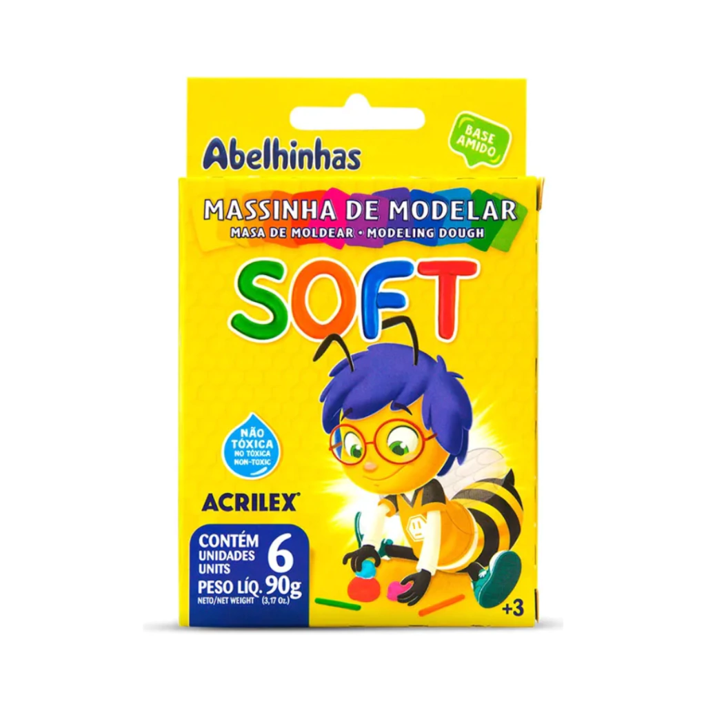 - 1 Massinha de Modelar Acrilex com 6 cores: macia, atóxica e fácil de moldar.