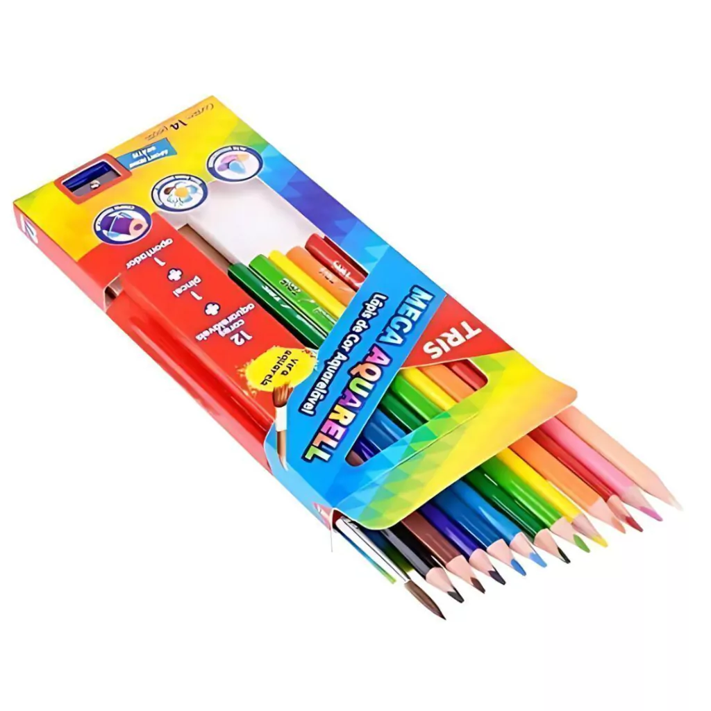 Lápis De Cor Mega Aquarell 12 Cores + 1 Pincel e 1 Apontador - Tris