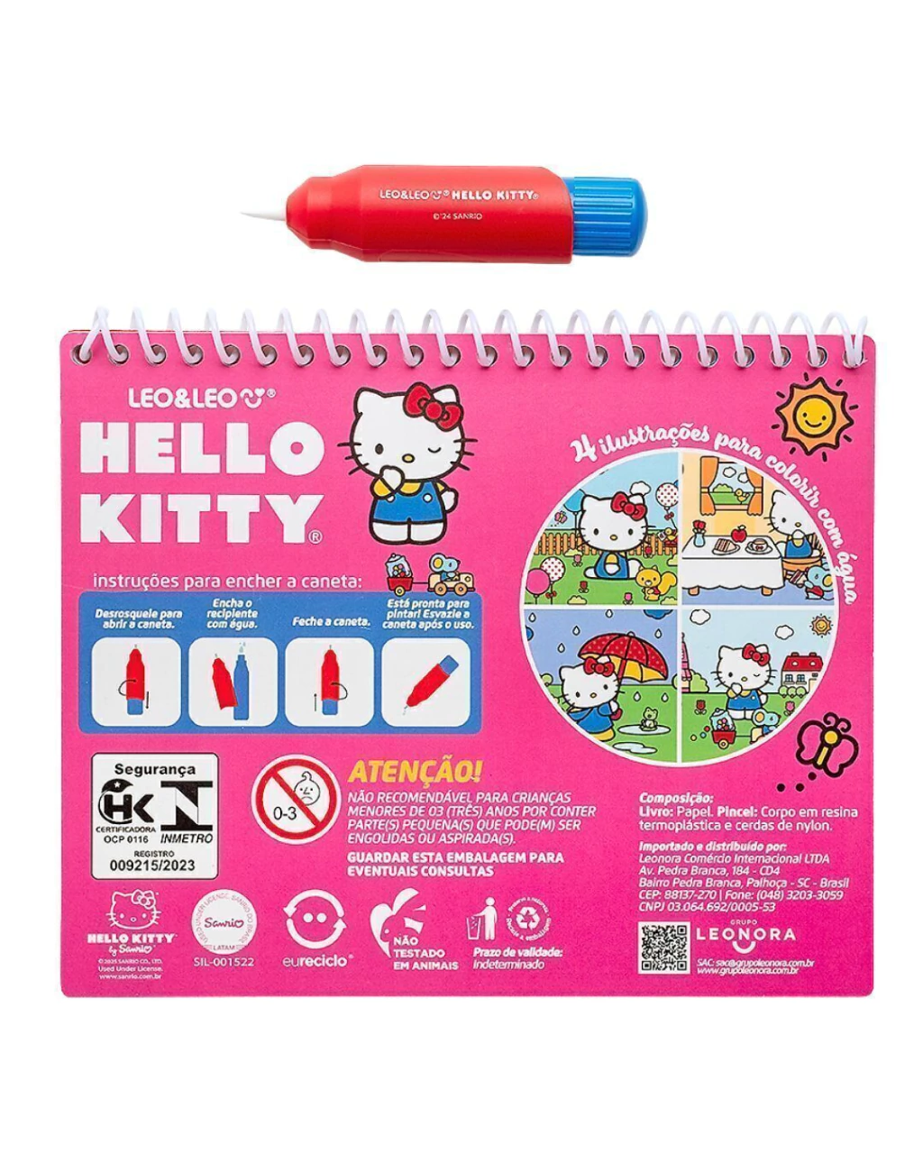 Diversão garantida sem bagunça! O livro vem com 4 cenários da Hello Kitty para colorir usando apenas água. Acompanha uma caneta recarregável, basta encher com água e ver as cores surgirem como mágica!