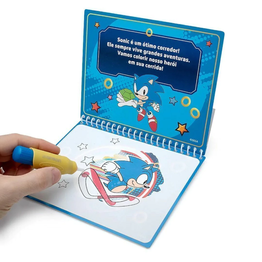Quem disse que colorir precisa de lápis e tinta? Com o Livro de Colorir com Água Sonic, a diversão acontece de um jeito mágico: basta encher o pincel com água e passar pelas páginas para que as cores e imagens escondidas apareçam como em um passe de mágica!