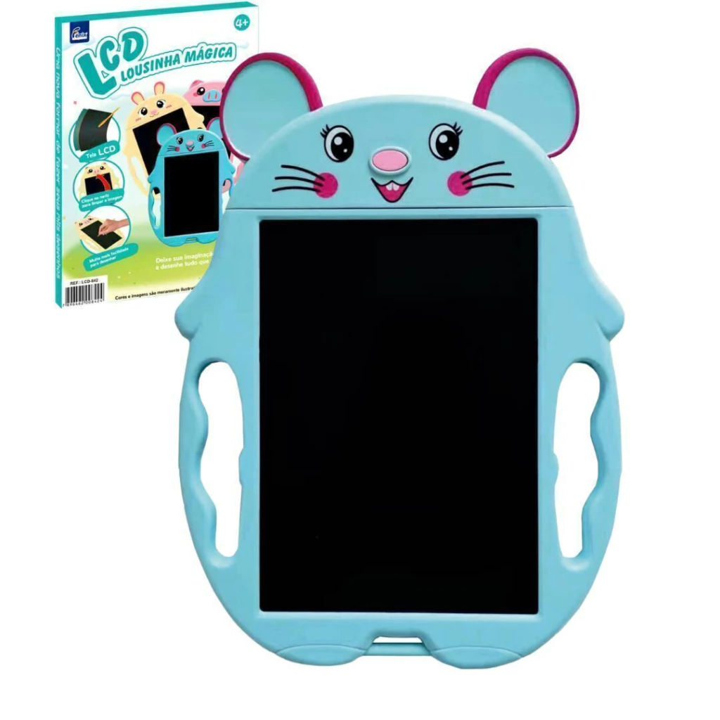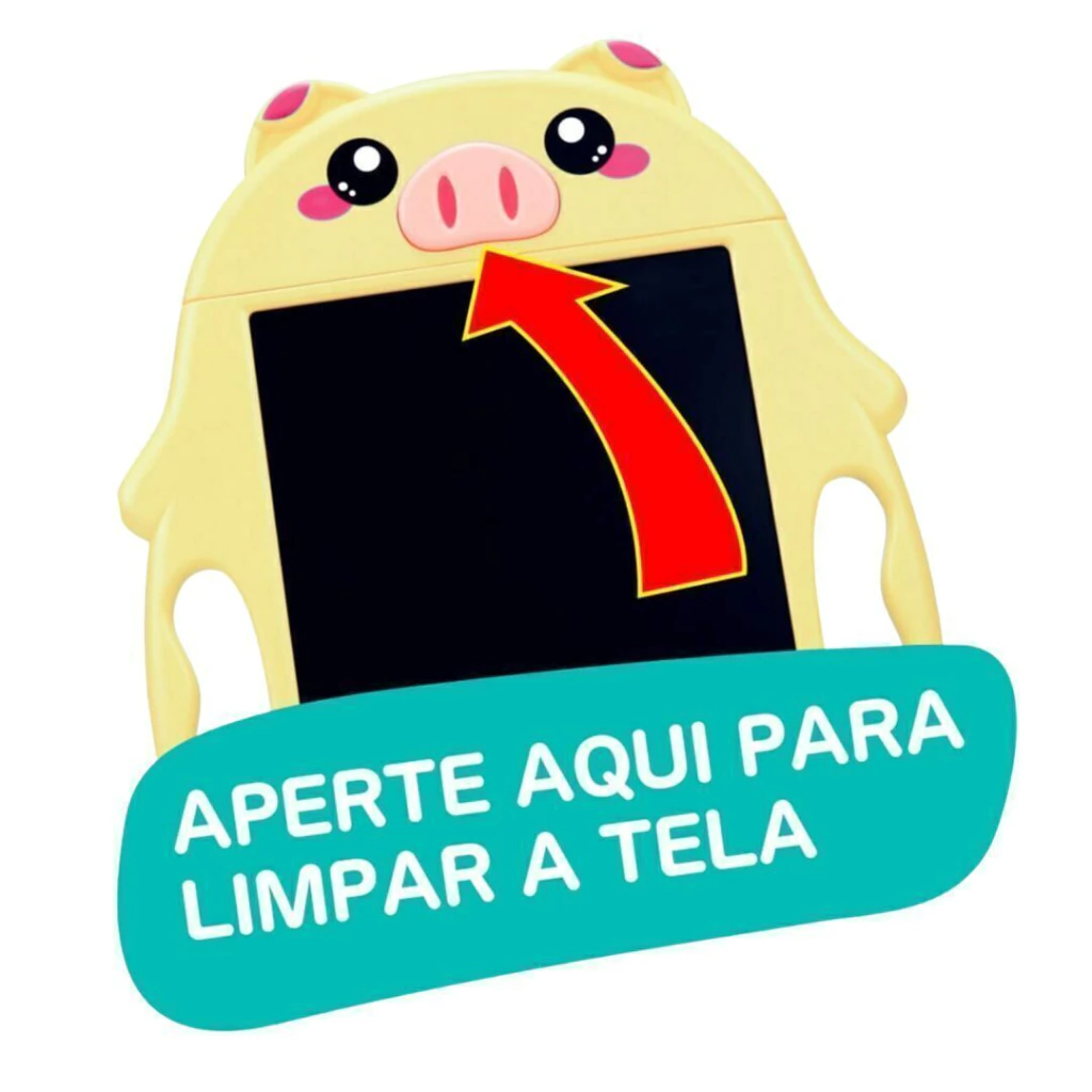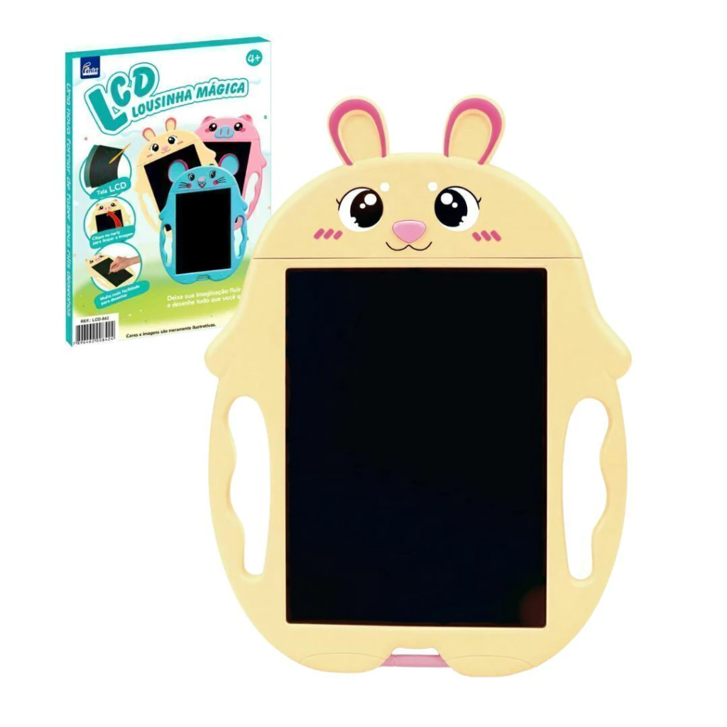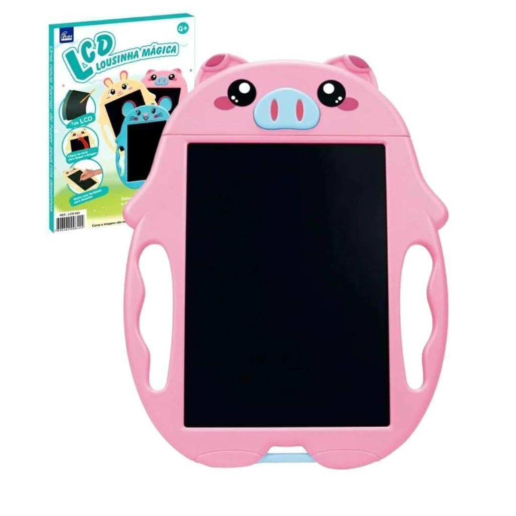 A Lousinha é muito linda e divertida! É uma Lousa de LCD em que você faz um desenho e apaga apertando o narizinho do animalzinho.