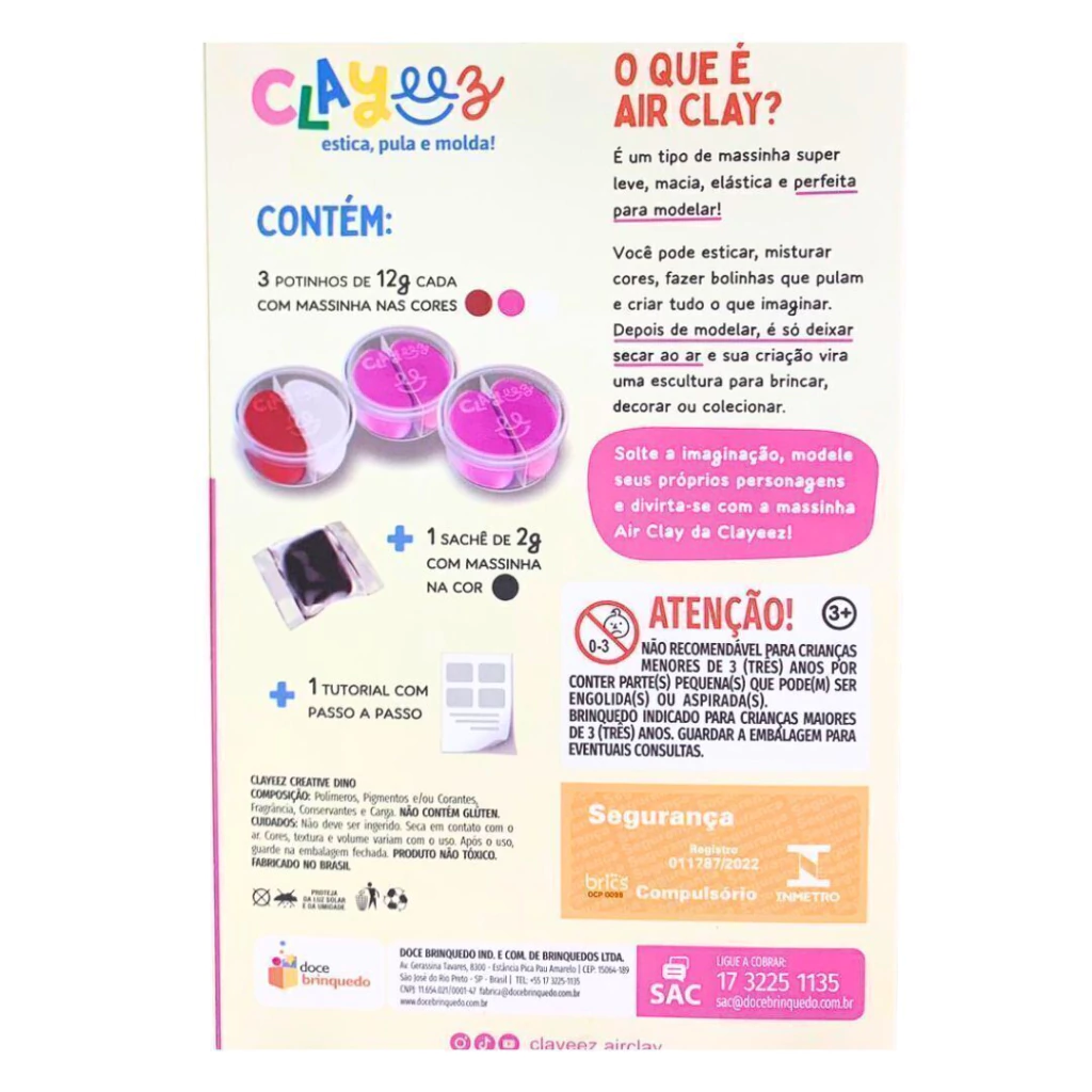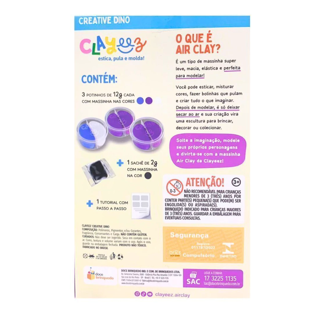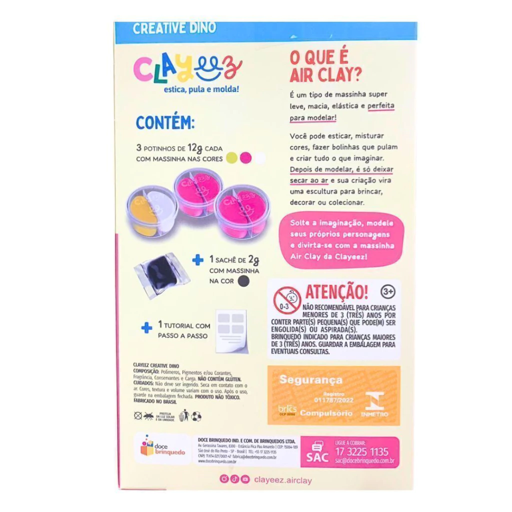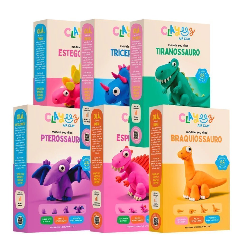 A diversão está garantida com a Massinha Air Clay Dino Clayeez, perfeita para crianças soltarem a imaginação enquanto modelam seus próprios dinossauros!
