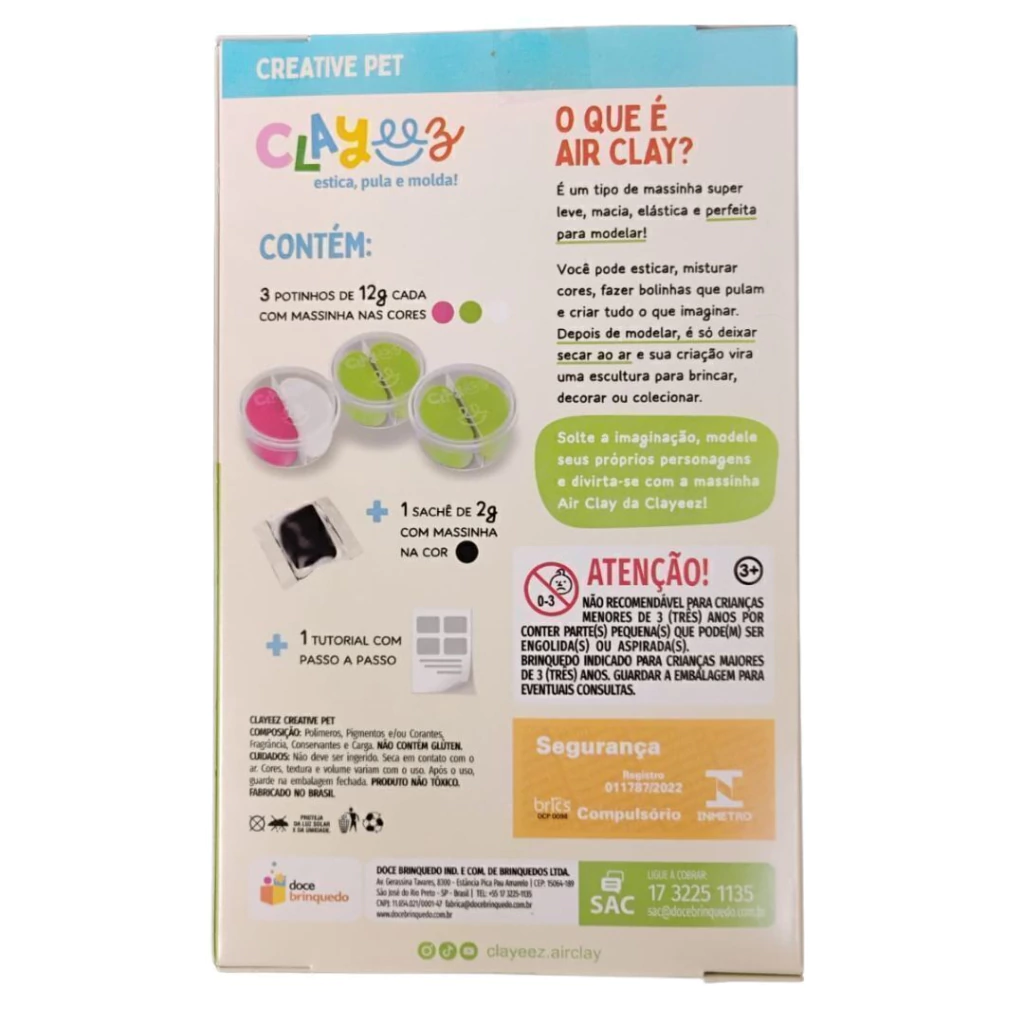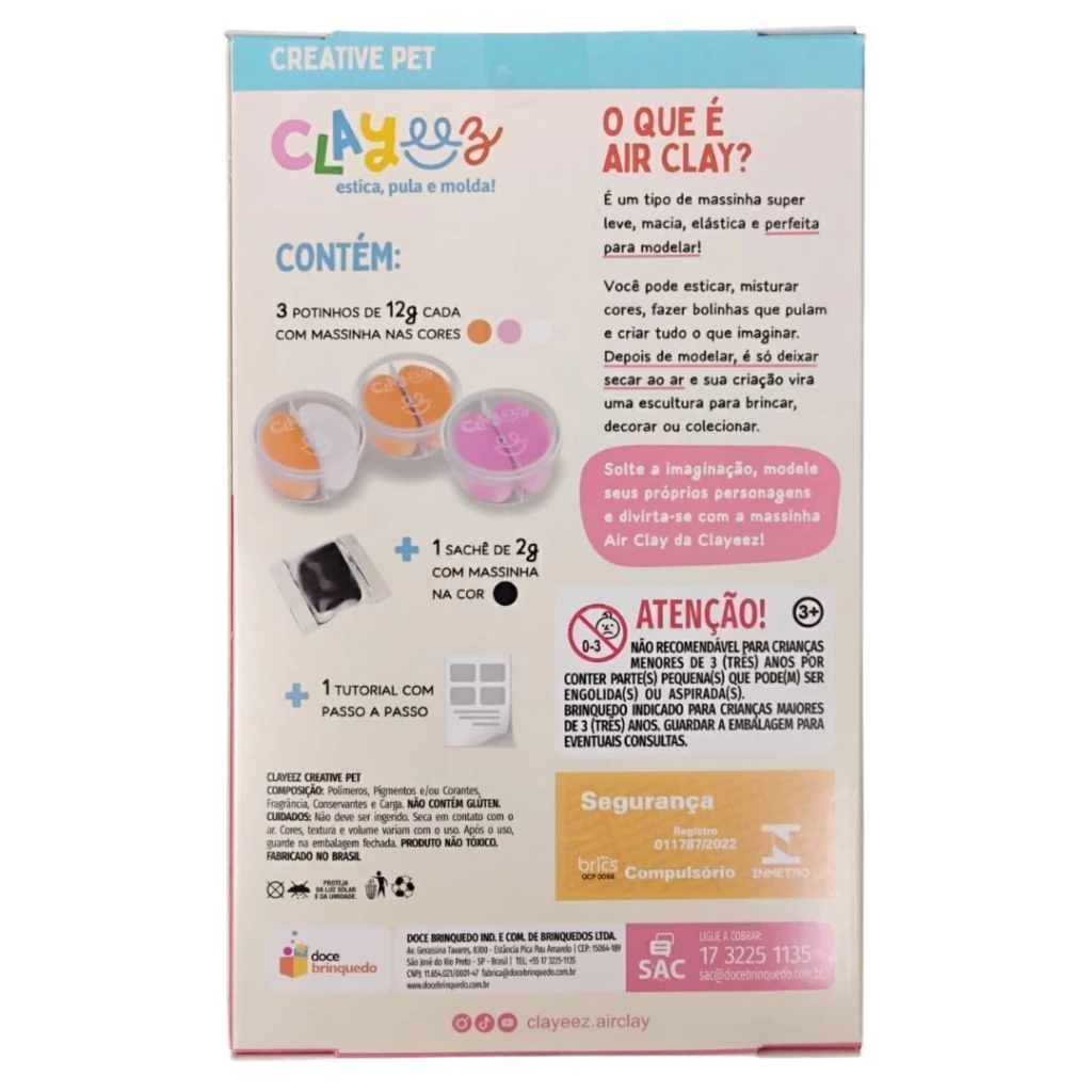 A diversão está garantida com a Massinha Air Clay Pet Clayeez, perfeita para crianças soltarem a imaginação enquanto modelam seus próprios pets!