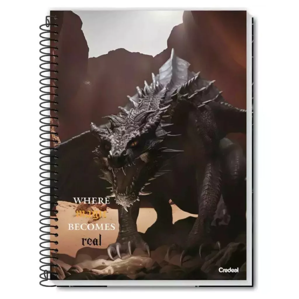 O Caderno Universitário Aventura Dragões 80 Folhas da Credeal é uma escolha impressionante para quem é fascinado pelo universo medieval e por dragões. Este caderno combina funcionalidade e um design único, com características que evocam o estilo de aventuras épicas. Veja o que o torna especial: