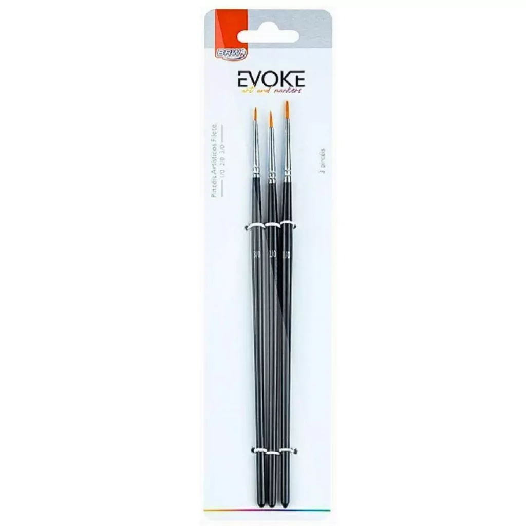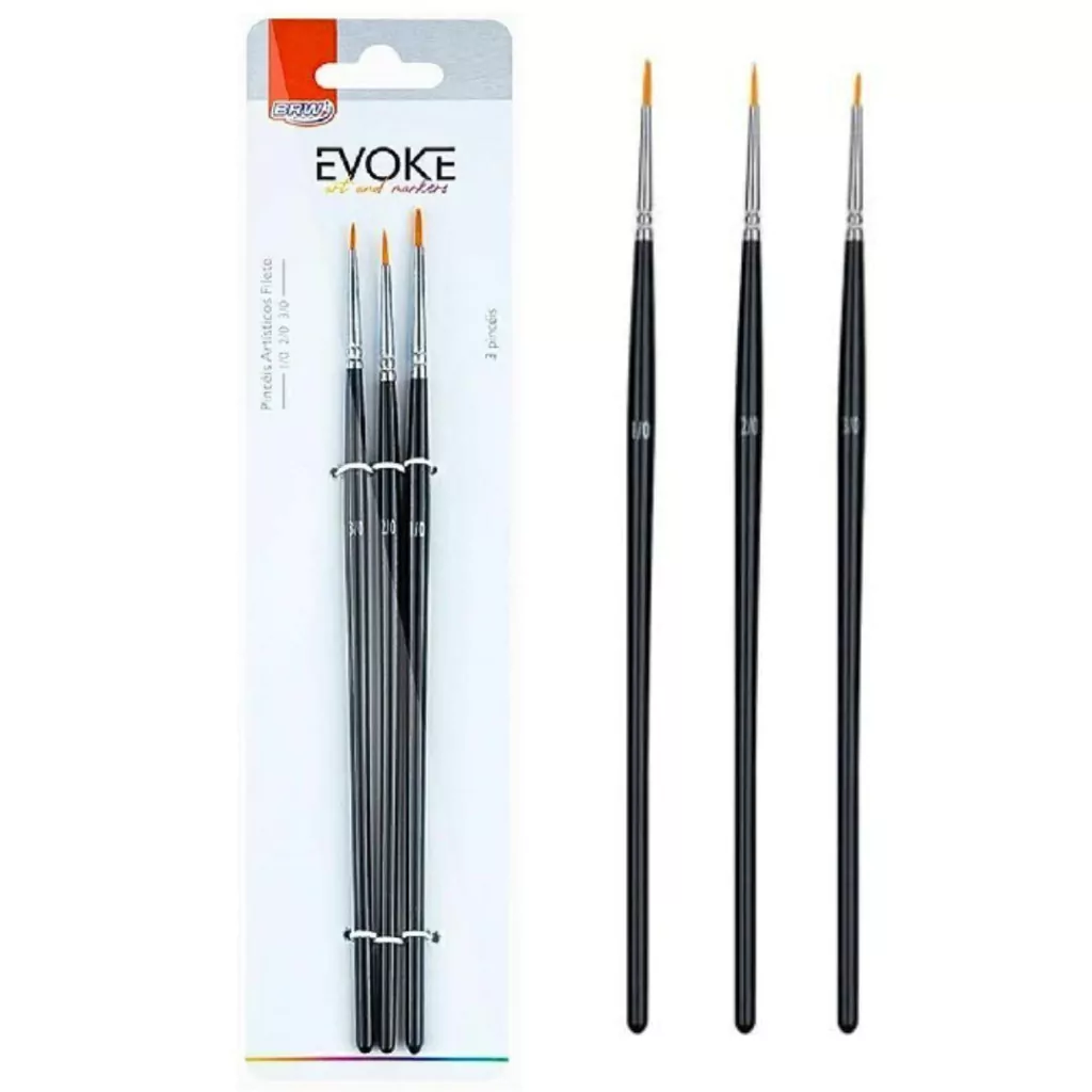Pincel Artístico Kit 3 Peças Ponta Filete Evoke - Brw